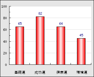 | 健康運 | 体力・健康に恵まれるか否かをあらわします。先天的に健康に恵まれても、これが悪いと次第に病弱となり、種々の病気に悩まされやすくなります。 | 65点 |