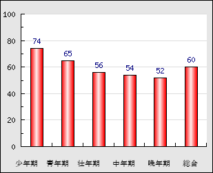| 中年期 | 50~65歳頃 | 54点- 6.0 |