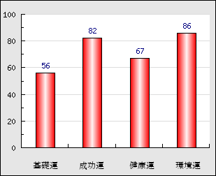 環境運 家庭や職場等での援助運・環境運を司ります。これが良いと配偶者や子供・職場の同僚などから助力が得られやすく、悪いと波乱・不和・孤独などがあります。 86点