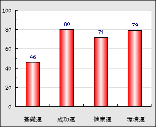 成功運 目的に対する成功運の強さをあらわします。この点数が高いほど自分の思い通りに成功し、逆に悪いと逆境・批判・障害などに苦心します。 80点