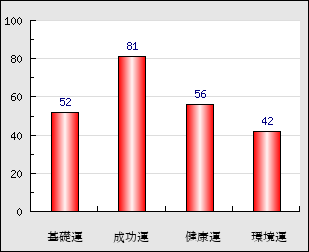 環境運 家庭や職場等での援助運・環境運を司ります。これが良いと配偶者や子供・職場の同僚などから助力が得られやすく、悪いと波乱・不和・孤独などがあります。 42点