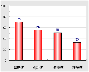 環境運 家庭や職場等での援助運・環境運を司ります。これが良いと配偶者や子供・職場の同僚などから助力が得られやすく、悪いと波乱・不和・孤独などがあります。 33点