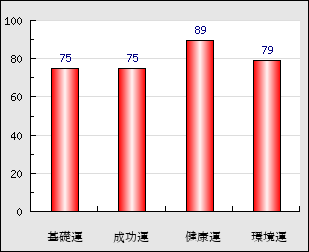 環境運 家庭や職場等での援助運・環境運を司ります。これが良いと配偶者や子供・職場の同僚などから助力が得られやすく、悪いと波乱・不和・孤独などがあります。 79点