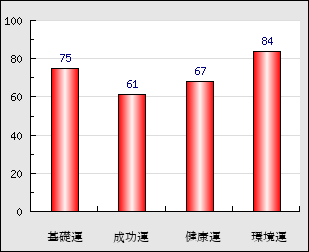 環境運 家庭や職場等での援助運・環境運を司ります。これが良いと配偶者や子供・職場の同僚などから助力が得られやすく、悪いと波乱・不和・孤独などがあります。 84点