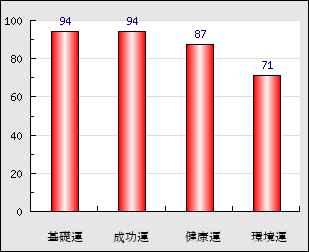 環境運 家庭や職場等での援助運・環境運を司ります。これが良いと配偶者や子供・職場の同僚などから助力が得られやすく、悪いと波乱・不和・孤独などがあります。 71点