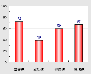 環境運 家庭や職場等での援助運・環境運を司ります。これが良いと配偶者や子供・職場の同僚などから助力が得られやすく、悪いと波乱・不和・孤独などがあります。 67点