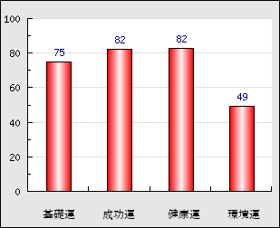 環境運 家庭や職場等での援助運・環境運を司ります。これが良いと配偶者や子供・職場の同僚などから助力が得られやすく、悪いと波乱・不和・孤独などがあります。 49点