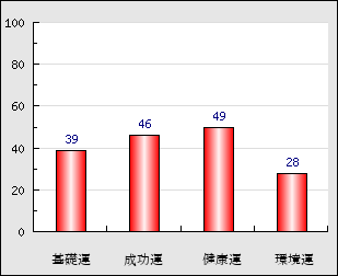 環境運 家庭や職場等での援助運・環境運を司ります。これが良いと配偶者や子供・職場の同僚などから助力が得られやすく、悪いと波乱・不和・孤独などがあります。 28点