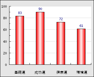 成功運 目的に対する成功運の強さをあらわします。この点数が高いほど自分の思い通りに成功し、逆に悪いと逆境・批判・障害などに苦心します。 90点
