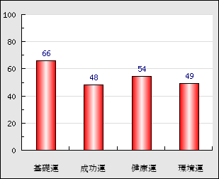 環境運 家庭や職場等での援助運・環境運を司ります。これが良いと配偶者や子供・職場の同僚などから助力が得られやすく、悪いと波乱・不和・孤独などがあります。 49点