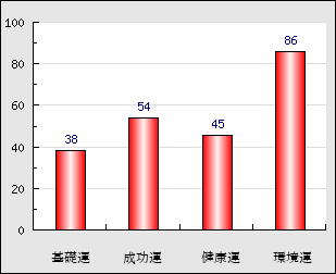 環境運 家庭や職場等での援助運・環境運を司ります。これが良いと配偶者や子供・職場の同僚などから助力が得られやすく、悪いと波乱・不和・孤独などがあります。 86点