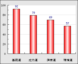 成功運 目的に対する成功運の強さをあらわします。この点数が高いほど自分の思い通りに成功し、逆に悪いと逆境・批判・障害などに苦心します。 79点