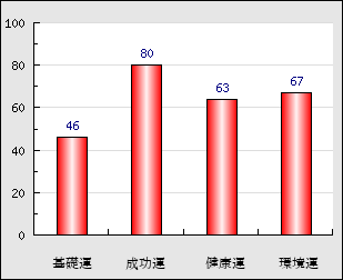 成功運 目的に対する成功運の強さをあらわします。この点数が高いほど自分の思い通りに成功し、逆に悪いと逆境・批判・障害などに苦心します。 80点