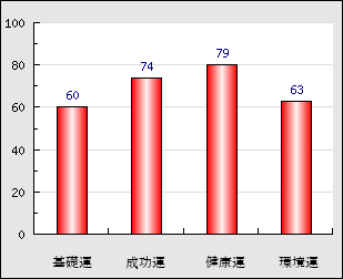 環境運 家庭や職場等での援助運・環境運を司ります。これが良いと配偶者や子供・職場の同僚などから助力が得られやすく、悪いと波乱・不和・孤独などがあります。 63点