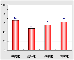 環境運 家庭や職場等での援助運・環境運を司ります。これが良いと配偶者や子供・職場の同僚などから助力が得られやすく、悪いと波乱・不和・孤独などがあります。 63点