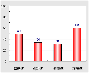 環境運 家庭や職場等での援助運・環境運を司ります。これが良いと配偶者や子供・職場の同僚などから助力が得られやすく、悪いと波乱・不和・孤独などがあります。 60点
