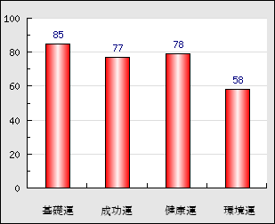 環境運 家庭や職場等での援助運・環境運を司ります。これが良いと配偶者や子供・職場の同僚などから助力が得られやすく、悪いと波乱・不和・孤独などがあります。 58点