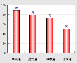 環境運 家庭や職場等での援助運・環境運を司ります。これが良いと配偶者や子供・職場の同僚などから助力が得られやすく、悪いと波乱・不和・孤独などがあります。 50点