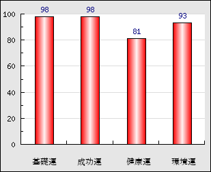 環境運 家庭や職場等での援助運・環境運を司ります。これが良いと配偶者や子供・職場の同僚などから助力が得られやすく、悪いと波乱・不和・孤独などがあります。 93点