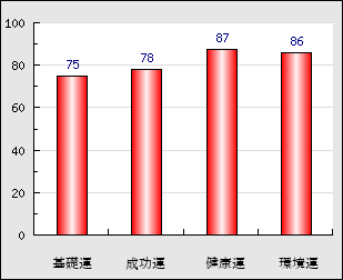 環境運 家庭や職場等での援助運・環境運を司ります。これが良いと配偶者や子供・職場の同僚などから助力が得られやすく、悪いと波乱・不和・孤独などがあります。 86点