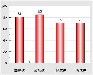 成功運 目的に対する成功運の強さをあらわします。この点数が高いほど自分の思い通りに成功し、逆に悪いと逆境・批判・障害などに苦心します。 85点