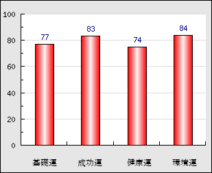 環境運 家庭や職場等での援助運・環境運を司ります。これが良いと配偶者や子供・職場の同僚などから助力が得られやすく、悪いと波乱・不和・孤独などがあります。 84点