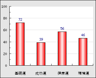 環境運 家庭や職場等での援助運・環境運を司ります。これが良いと配偶者や子供・職場の同僚などから助力が得られやすく、悪いと波乱・不和・孤独などがあります。 46点