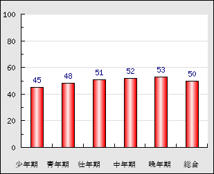 | 壮年期 | 35~50歳頃 | 57.4点+ 0.5 |