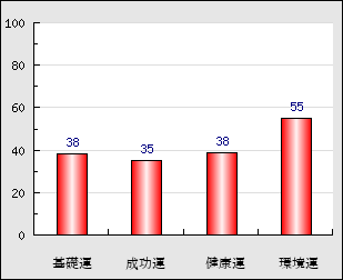 環境運 家庭や職場等での援助運・環境運を司ります。これが良いと配偶者や子供・職場の同僚などから助力が得られやすく、悪いと波乱・不和・孤独などがあります。 55点