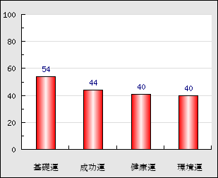 成功運 目的に対する成功運の強さをあらわします。この点数が高いほど自分の思い通りに成功し、逆に悪いと逆境・批判・障害などに苦心します。 44点