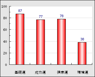 環境運 家庭や職場等での援助運・環境運を司ります。これが良いと配偶者や子供・職場の同僚などから助力が得られやすく、悪いと波乱・不和・孤独などがあります。 38点