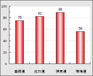 環境運 家庭や職場等での援助運・環境運を司ります。これが良いと配偶者や子供・職場の同僚などから助力が得られやすく、悪いと波乱・不和・孤独などがあります。 56点