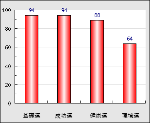 環境運 家庭や職場等での援助運・環境運を司ります。これが良いと配偶者や子供・職場の同僚などから助力が得られやすく、悪いと波乱・不和・孤独などがあります。 64点
