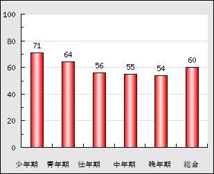 | 中年期 | 50~65歳頃 | 55点- 5.0 |