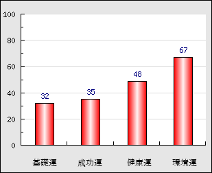 環境運 家庭や職場等での援助運・環境運を司ります。これが良いと配偶者や子供・職場の同僚などから助力が得られやすく、悪いと波乱・不和・孤独などがあります。 67点