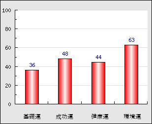 環境運 家庭や職場等での援助運・環境運を司ります。これが良いと配偶者や子供・職場の同僚などから助力が得られやすく、悪いと波乱・不和・孤独などがあります。 63点
