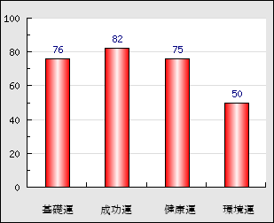 環境運 家庭や職場等での援助運・環境運を司ります。これが良いと配偶者や子供・職場の同僚などから助力が得られやすく、悪いと波乱・不和・孤独などがあります。 50点