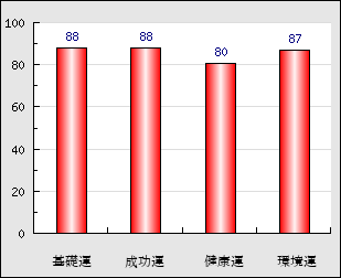 環境運 家庭や職場等での援助運・環境運を司ります。これが良いと配偶者や子供・職場の同僚などから助力が得られやすく、悪いと波乱・不和・孤独などがあります。 87点
