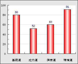 環境運 家庭や職場等での援助運・環境運を司ります。これが良いと配偶者や子供・職場の同僚などから助力が得られやすく、悪いと波乱・不和・孤独などがあります。 91点