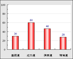 成功運 目的に対する成功運の強さをあらわします。この点数が高いほど自分の思い通りに成功し、逆に悪いと逆境・批判・障害などに苦心します。 60点