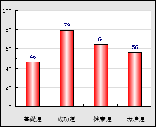 成功運 目的に対する成功運の強さをあらわします。この点数が高いほど自分の思い通りに成功し、逆に悪いと逆境・批判・障害などに苦心します。 79点