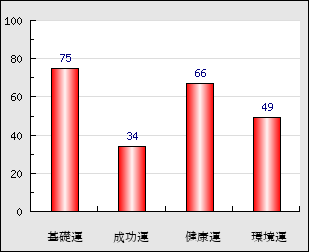 環境運 家庭や職場等での援助運・環境運を司ります。これが良いと配偶者や子供・職場の同僚などから助力が得られやすく、悪いと波乱・不和・孤独などがあります。 49点