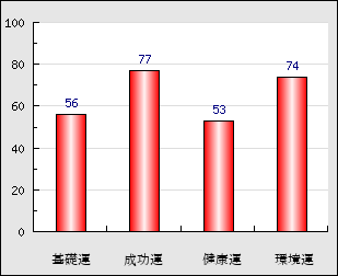 環境運 家庭や職場等での援助運・環境運を司ります。これが良いと配偶者や子供・職場の同僚などから助力が得られやすく、悪いと波乱・不和・孤独などがあります。 74点