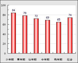 | 中年期 | 50~65歳頃 | 73.9点- 4.1 |
