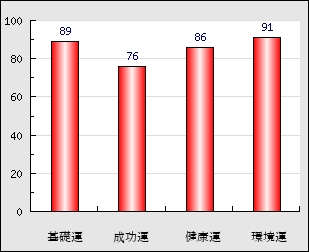 環境運 家庭や職場等での援助運・環境運を司ります。これが良いと配偶者や子供・職場の同僚などから助力が得られやすく、悪いと波乱・不和・孤独などがあります。 91点