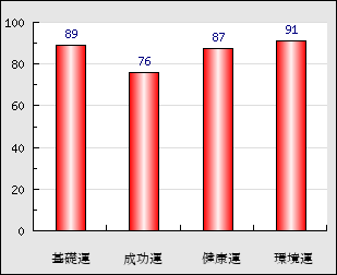 環境運 家庭や職場等での援助運・環境運を司ります。これが良いと配偶者や子供・職場の同僚などから助力が得られやすく、悪いと波乱・不和・孤独などがあります。 91点