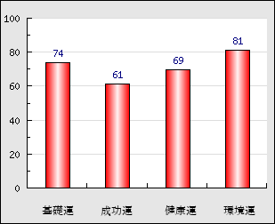 環境運 家庭や職場等での援助運・環境運を司ります。これが良いと配偶者や子供・職場の同僚などから助力が得られやすく、悪いと波乱・不和・孤独などがあります。 81点