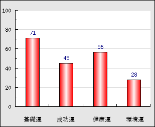 環境運 家庭や職場等での援助運・環境運を司ります。これが良いと配偶者や子供・職場の同僚などから助力が得られやすく、悪いと波乱・不和・孤独などがあります。 28点