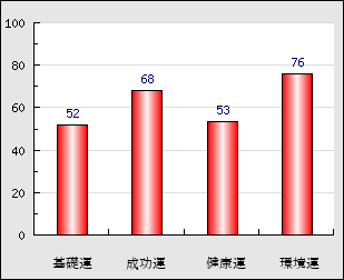 環境運 家庭や職場等での援助運・環境運を司ります。これが良いと配偶者や子供・職場の同僚などから助力が得られやすく、悪いと波乱・不和・孤独などがあります。 76点