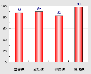 成功運 目的に対する成功運の強さをあらわします。この点数が高いほど自分の思い通りに成功し、逆に悪いと逆境・批判・障害などに苦心します。 90点